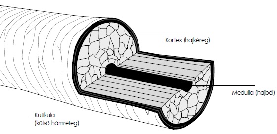 A haj több rétegből áll, amelyek összefoglalva: a medulla, a cortex és a kutikula.